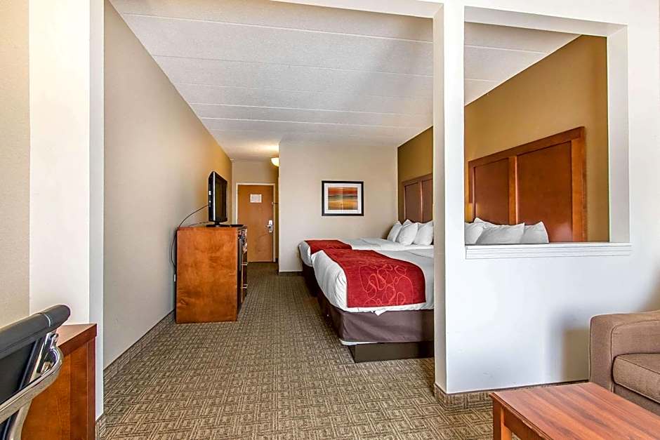 This suite features a TV, a washing machine and a refrigerator.